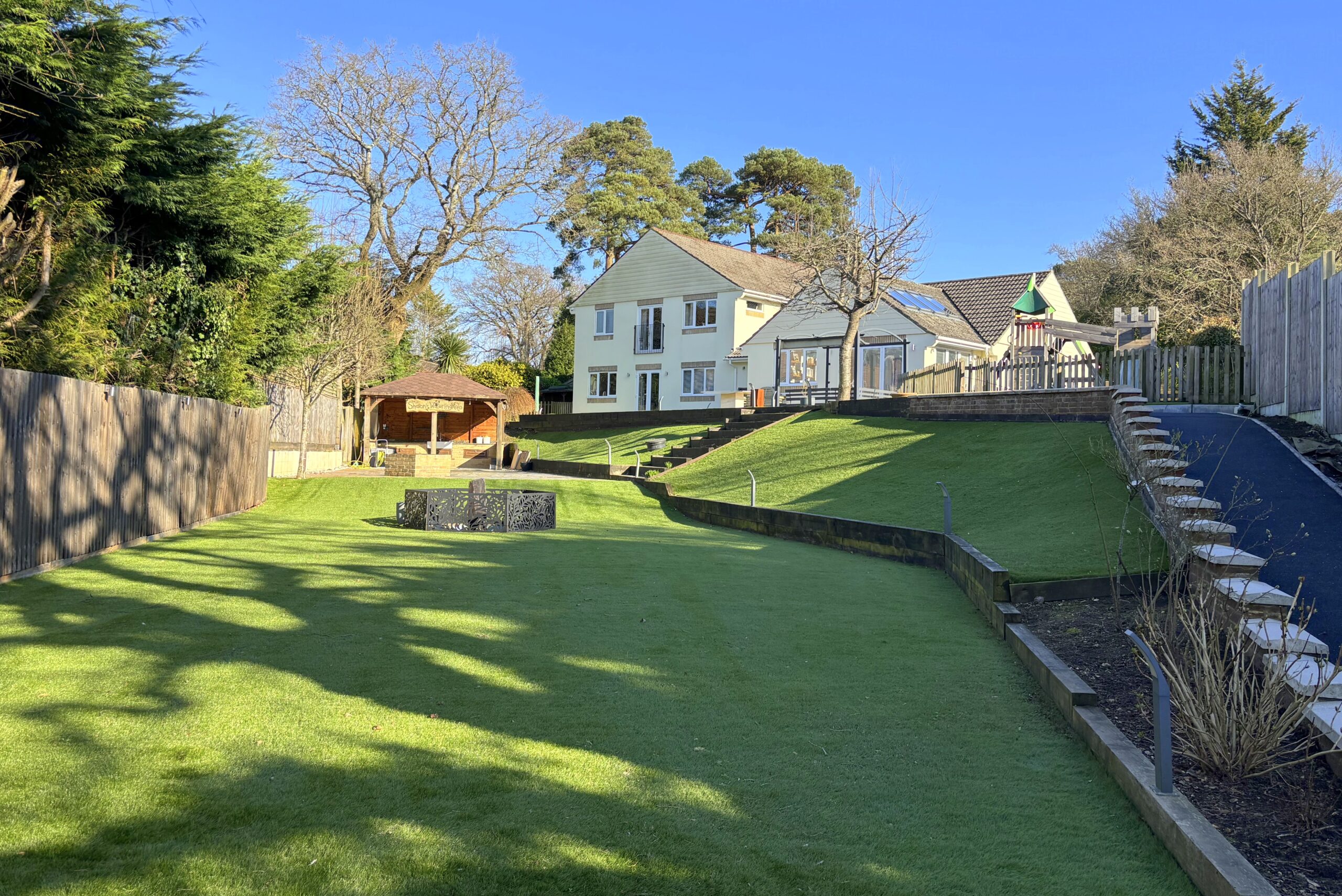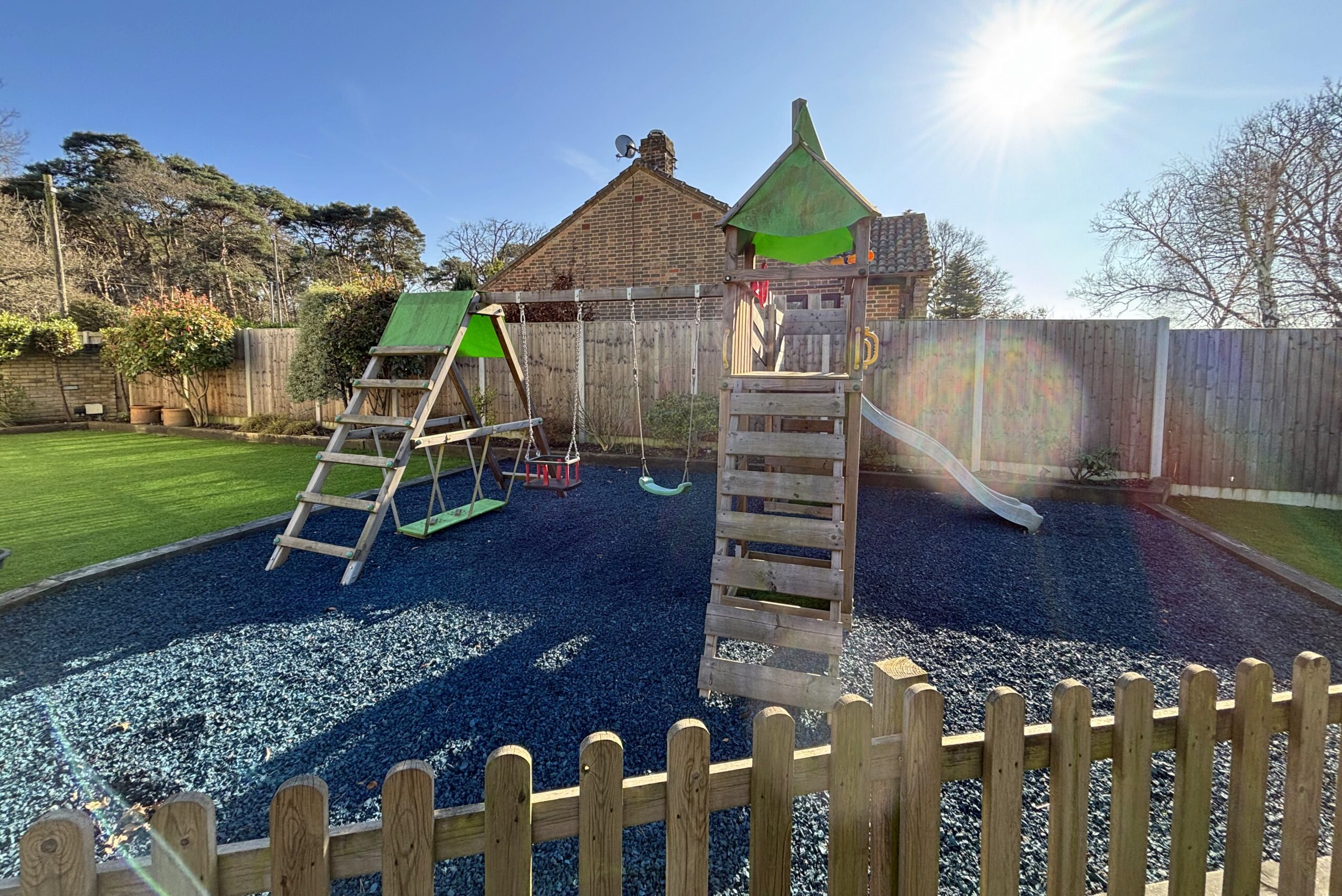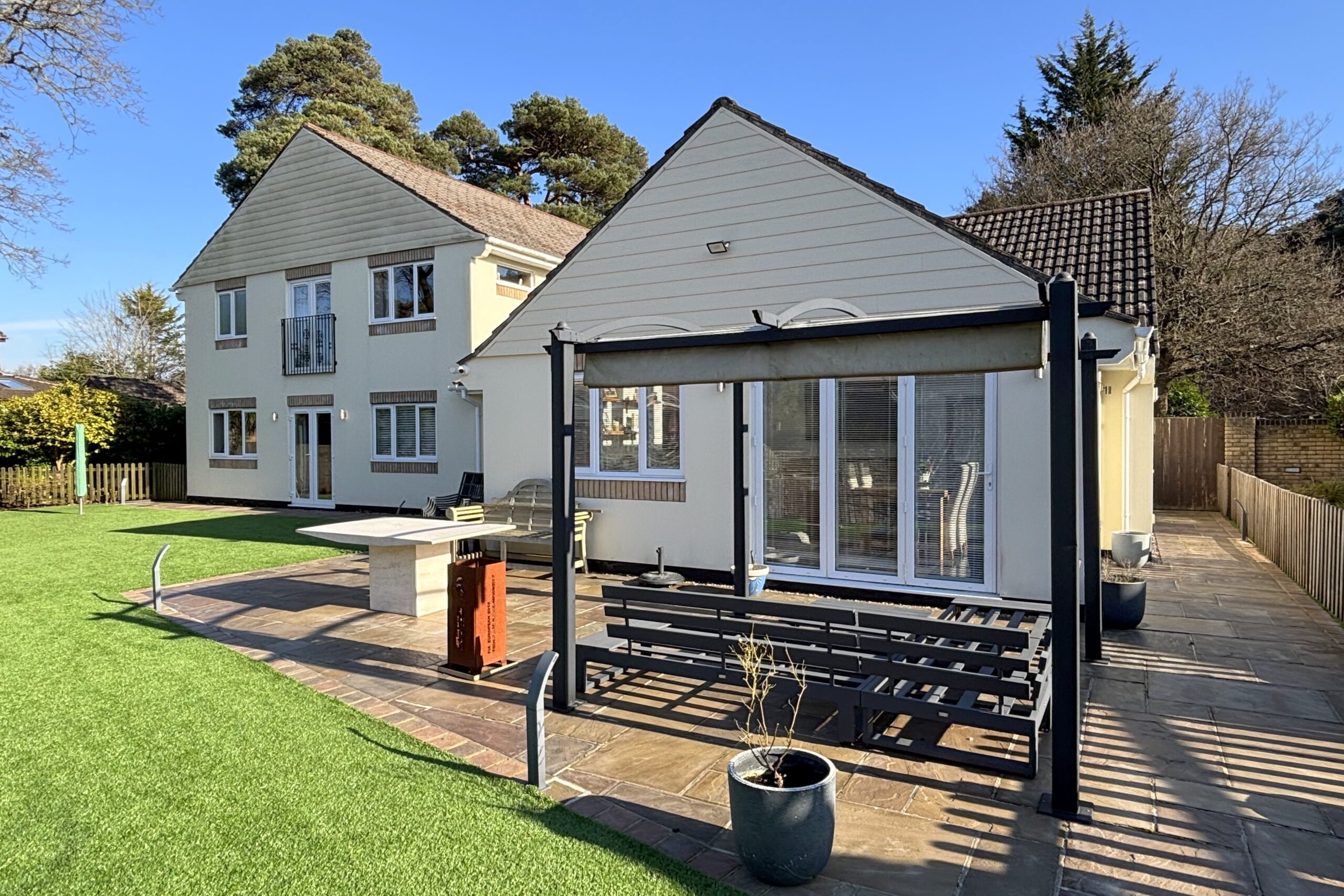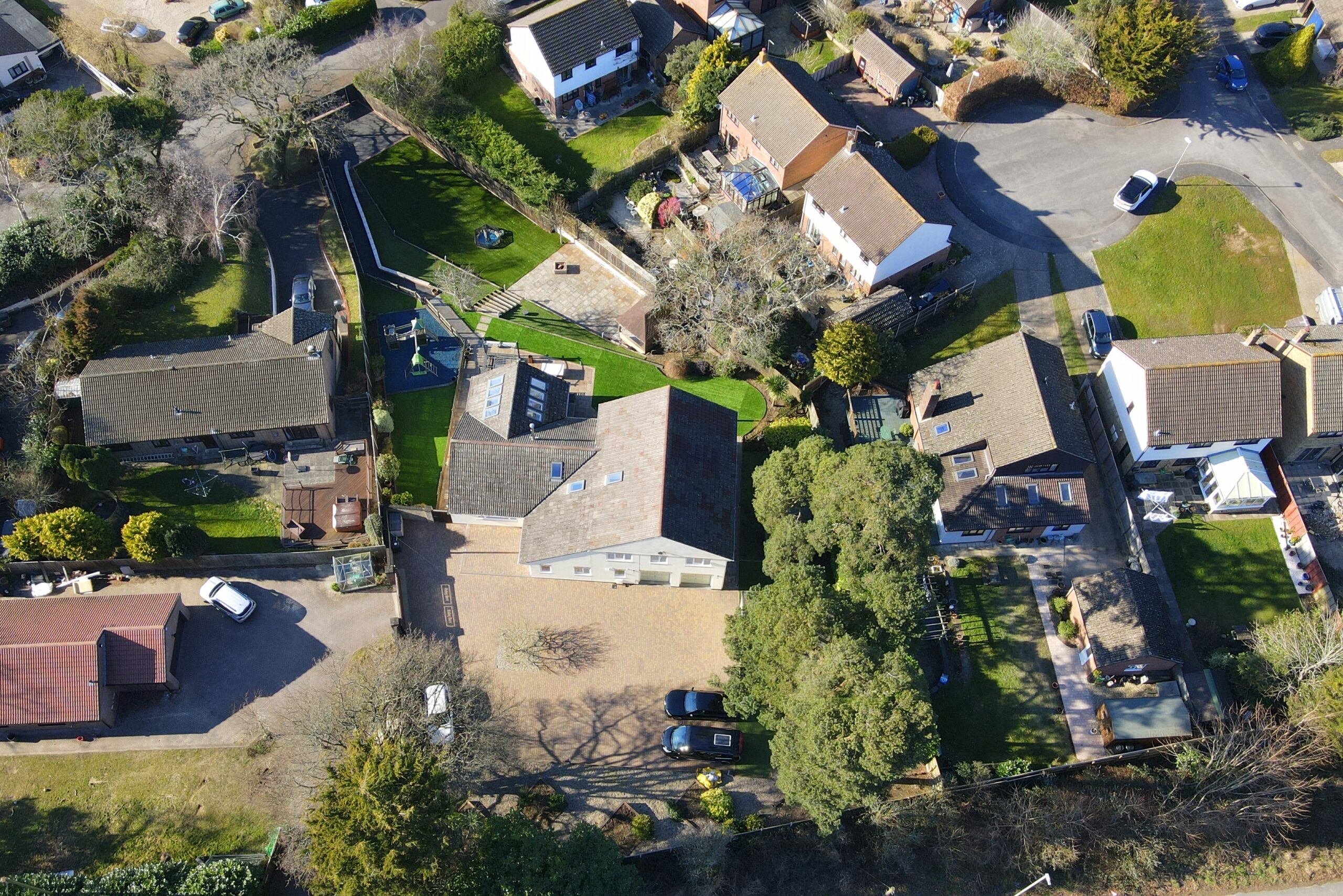 The property offers five/six generous double bedrooms, complemented by three dressing rooms and two well-appointed en suite shower rooms. The flexible accommodation allows the layout to adapt to a variety of needs, whether for larger families, guest accommodation or multi-generational living. As well as a relaxing lounge with log burner, there is also stunning family room to the rear featuring a vaulted ceiling that creates a wonderful sense of space and light. This inviting area provides the perfect setting for everyday family life as well as entertaining guests and leads through a stylish kitchen with island.